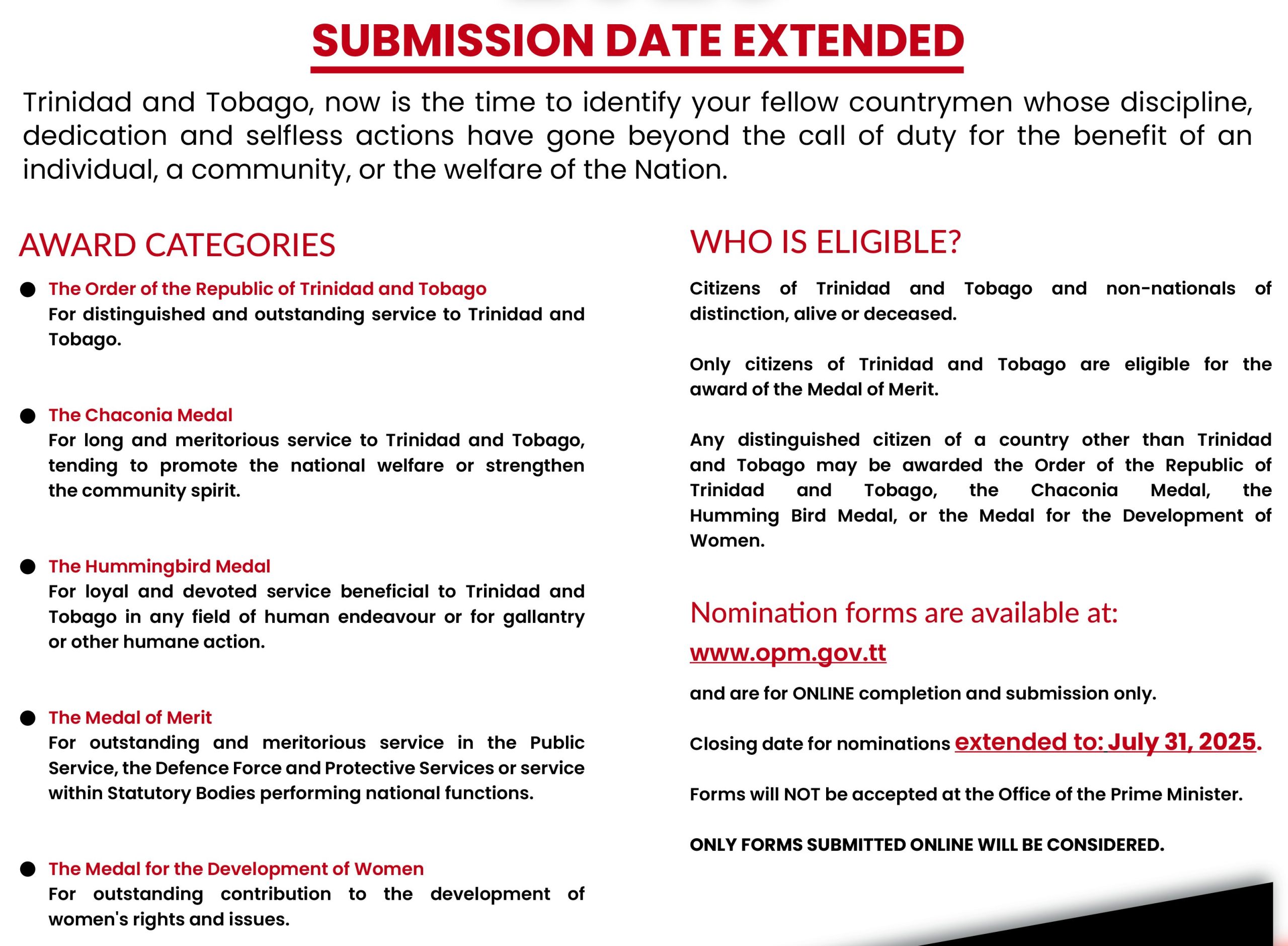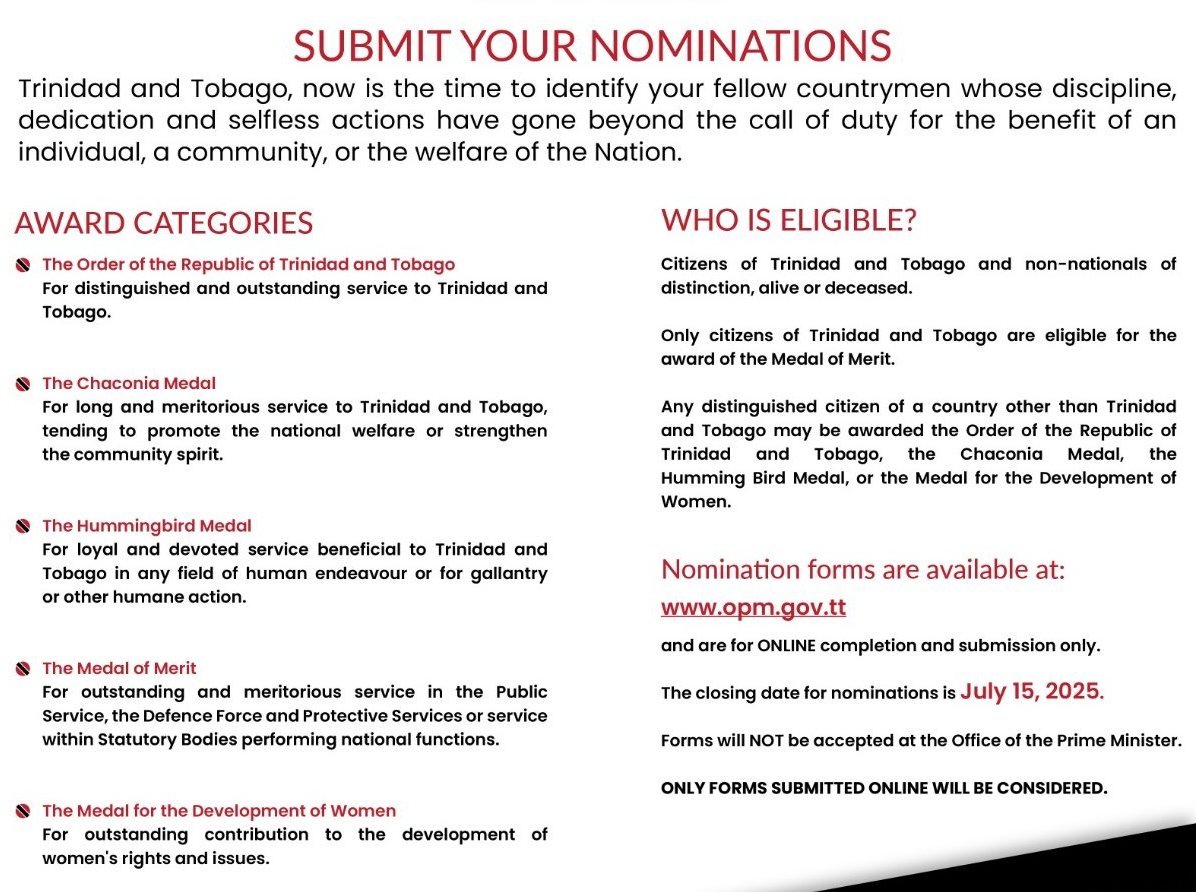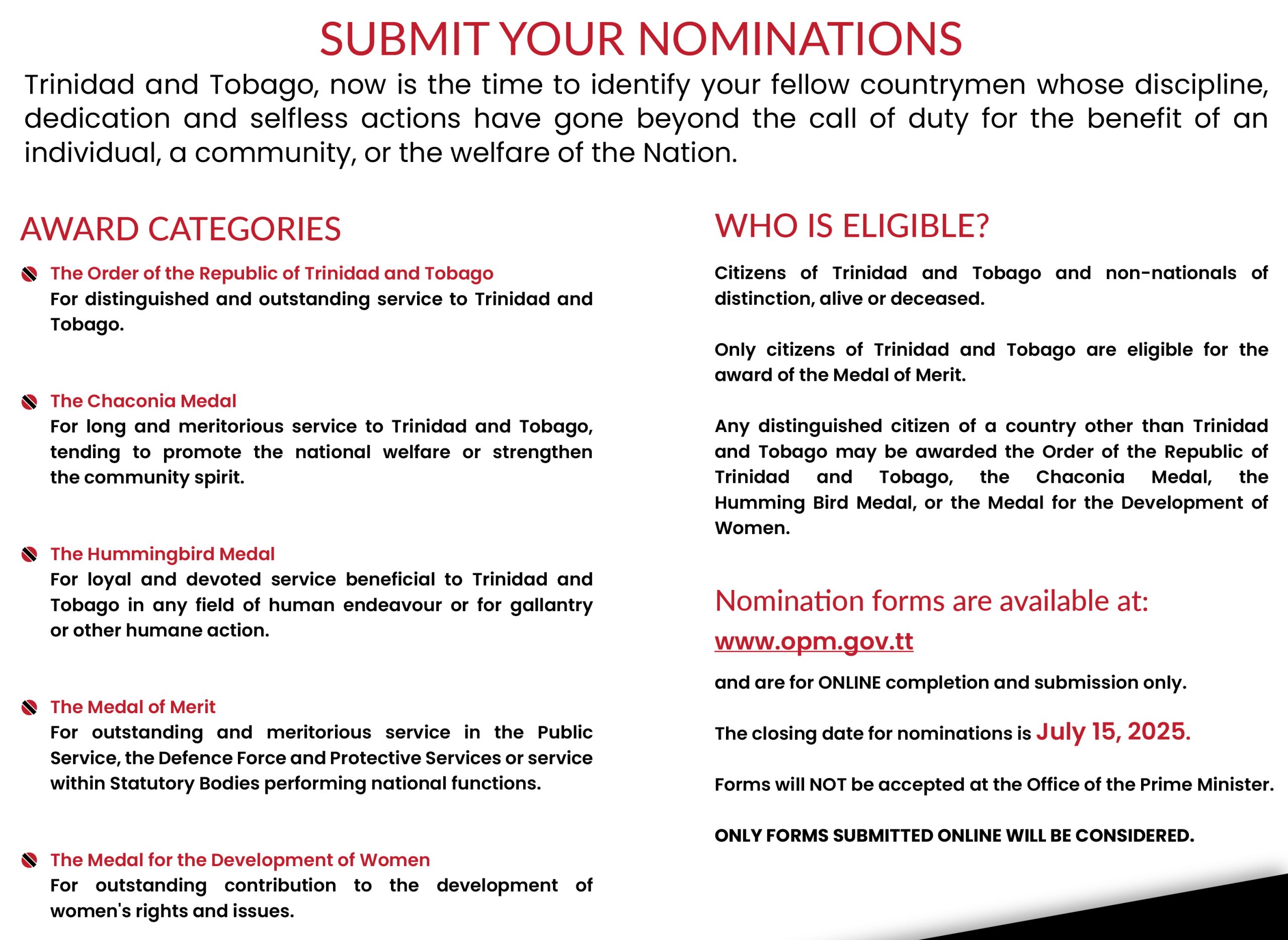 The closing date for the receipt of nominations for National Awards is July 15, 2025.